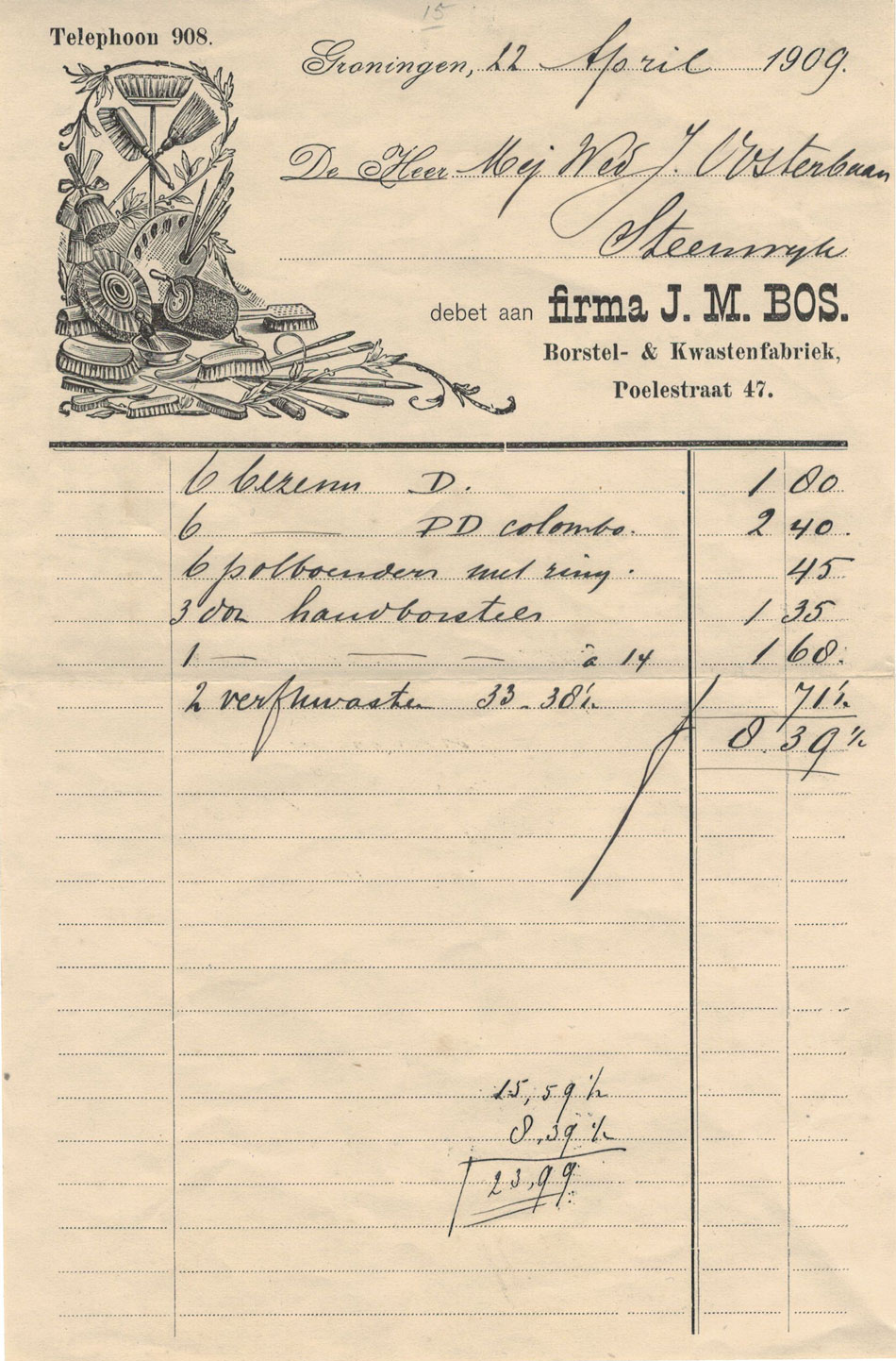 Groningen, 1926, factuur; teksten in zwart en rood, € 10.
