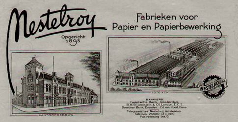 Zie ook een bijzonder fraai geïllustreerd aandeel van Papierindustrie Nestelroy Trompenburg (met o.a. een afbeelding van de fabriekscomplexen en van dhr. Nestelrooij), dat te koop staat op onze webpagina met aandelen van papierfabrieken.