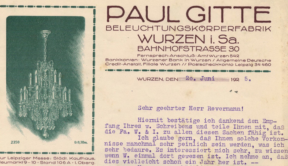 Wurzen i. Sa., Bahnhofstrasse 30, Deutschland, brief aus 1925; Grüne