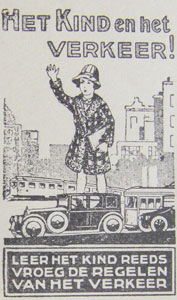 90 jaar geleden realiseerde men zich dat het voor kinderen in het verkeer gevaarlijk was. Daartoe gaf uitgeverij P. J. Mulder & Zoon te Leiden in 1929 een lesboek uit: "Het Kind en het Verkeer".