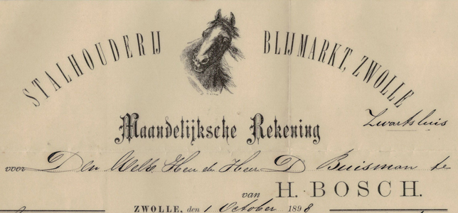 H. Bosch, Stalhouderij, Blijmarkt, Zwolle, 1898