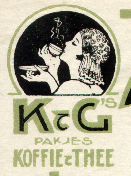 Kanis & Gunnik N.V. Stoom Koffiebranderij & Theehandel, Kampen (O). ---------- Nota uit 1930, afm. ca. 20 x 22 cm, in groen en zwart gedrukt, met prachtige afbeelding (4 x 3 cm.) van een dame met oorijzers die van een dampende kop thee of koffie geniet; 2 archiefgaten en speldeprik op de i; prijs € 25. |