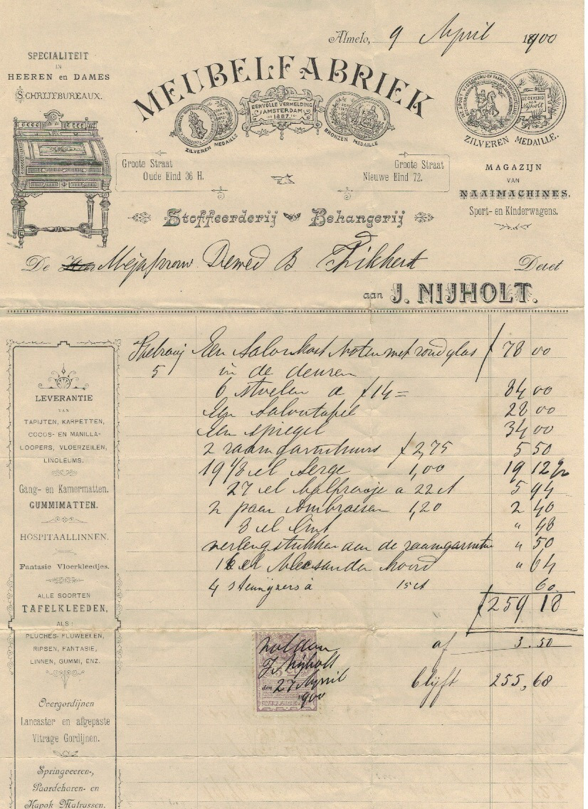 wolff & Zonen, Meppel, behangfabriek, nota uit 1901
