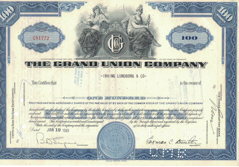 New York (incorporated in 1944), 1971, 100 shares, green border, hole